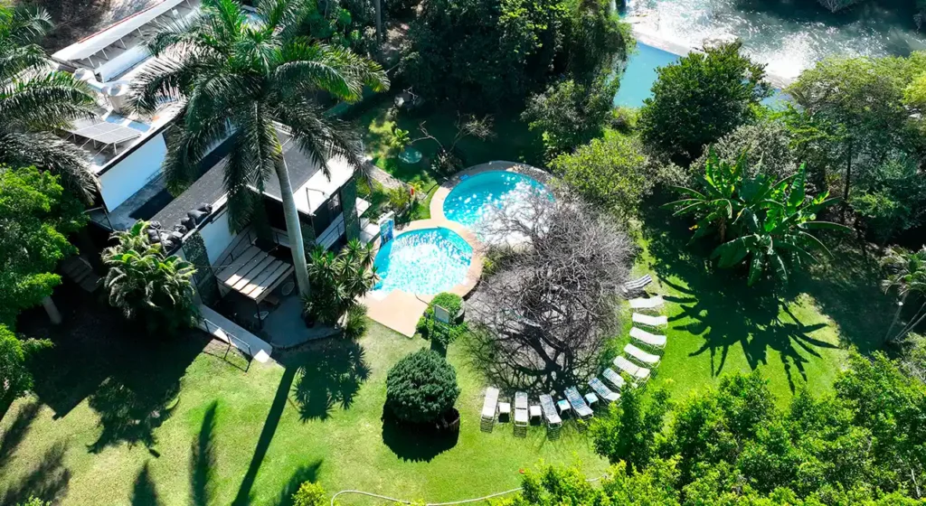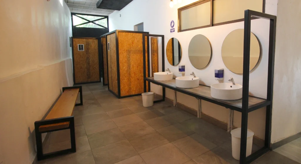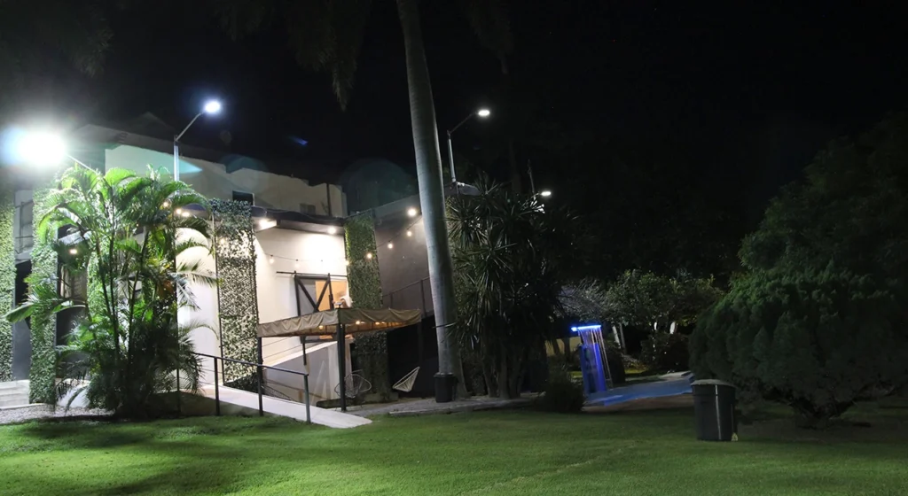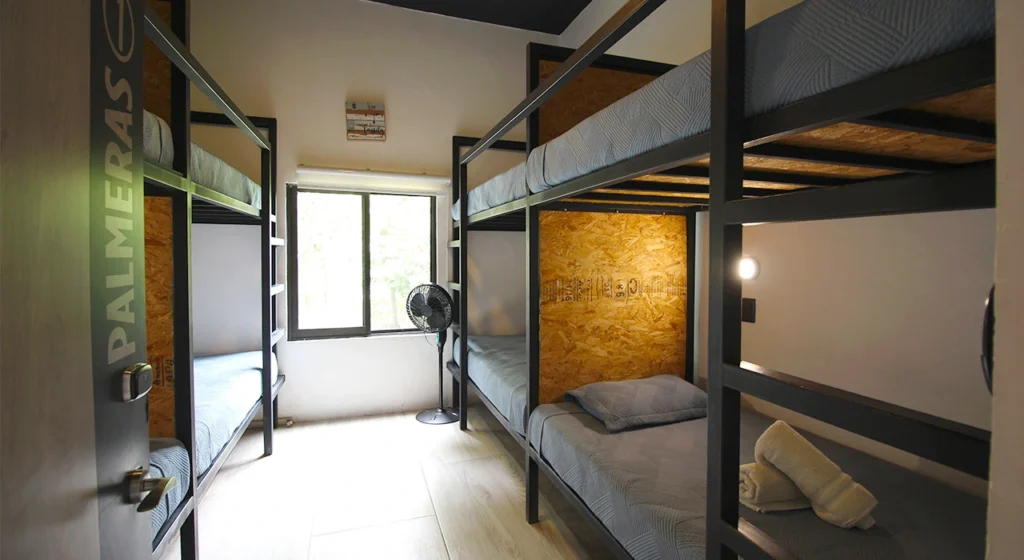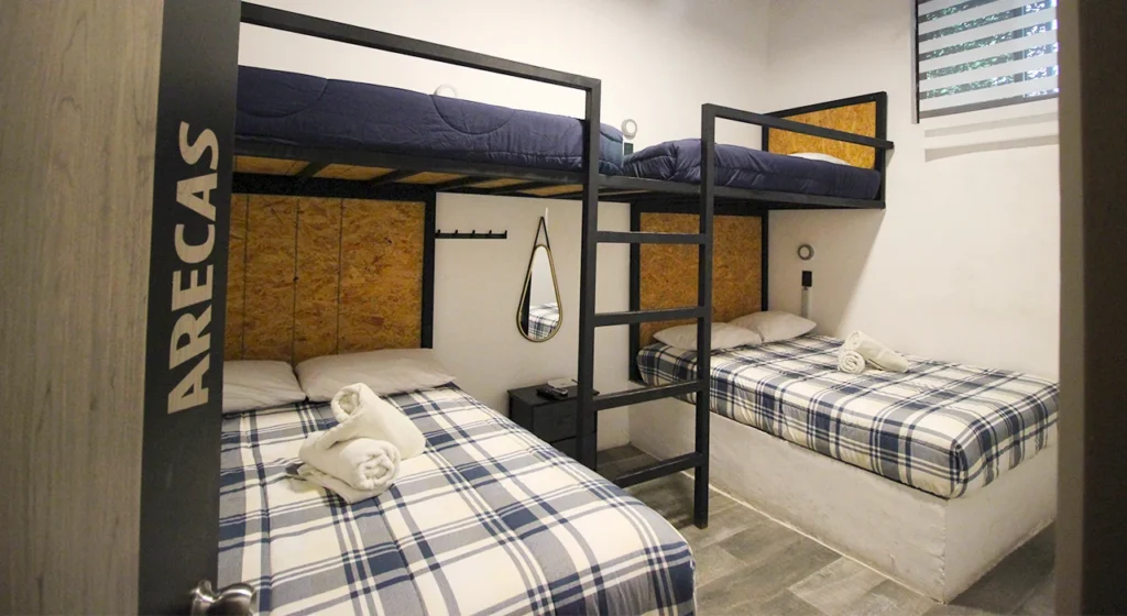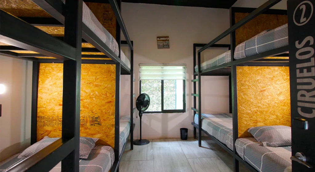 En Aldea encontrarás habitaciones con capacidad a tus necesidades, cuenta con literas matrimoniales e individuales, cama king size, ventilador o aire acondicionado, baños tipo club y un entorno amplio y verde con una alberca de uso exclusivo para huéspedes.