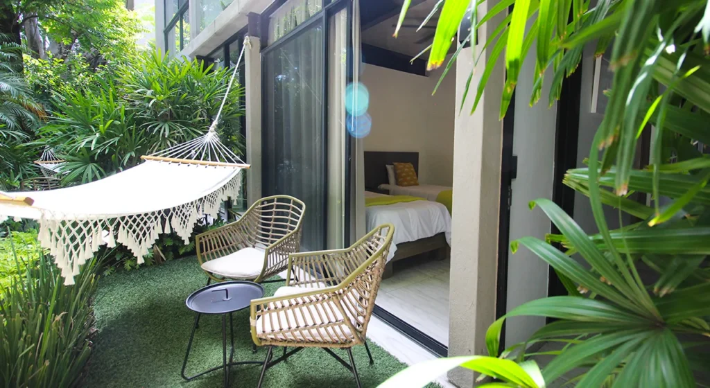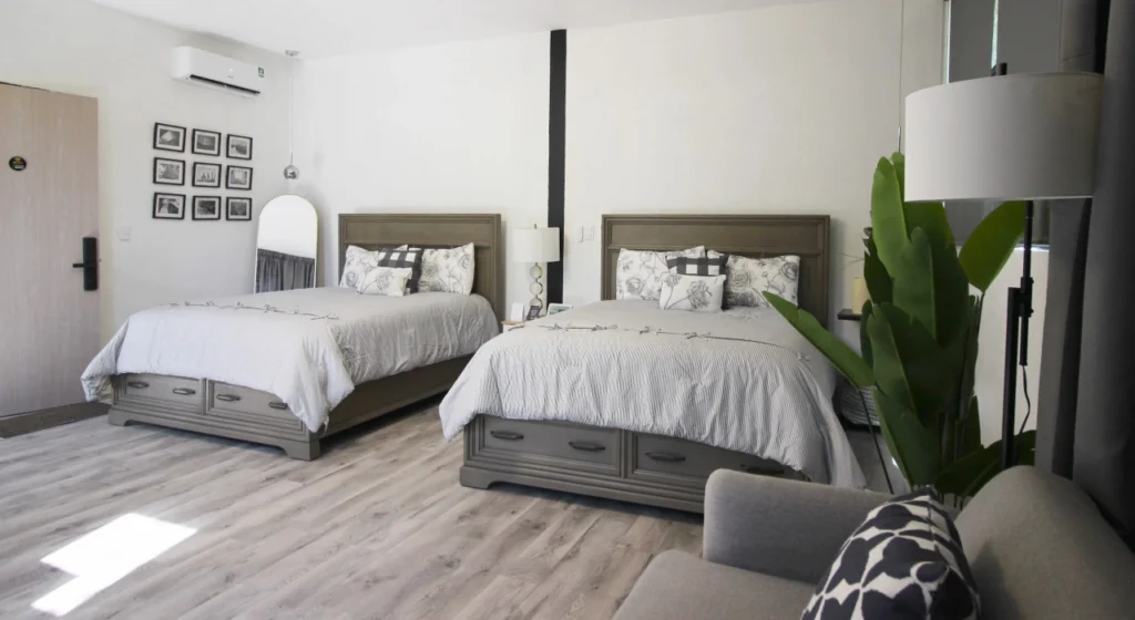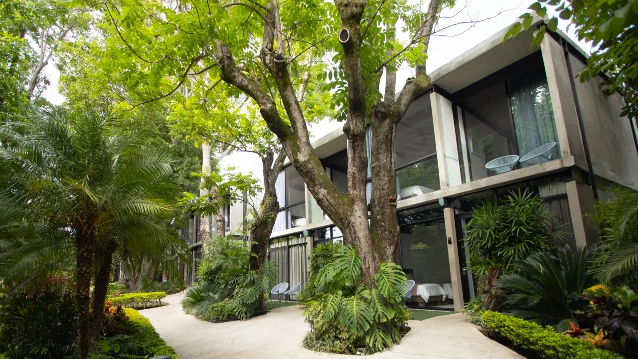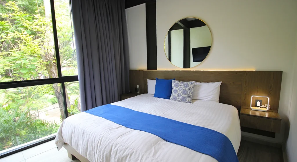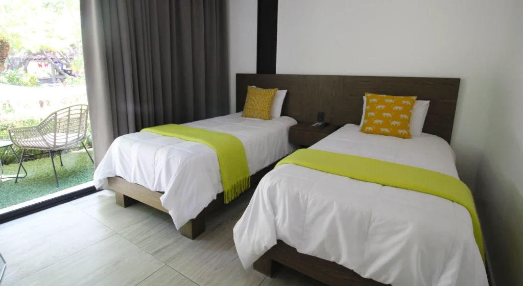 Suites que te invitan a descubrir el encanto en un entorno natural y privilegiado. Planta alta y baja te ofrecen habitaciones dedicadas a tu comodidad, WiFi, agua caliente, restaurante y terraza bar en el centro del complejo, así como alberca y jacuzzi exclusiva para huéspedes.